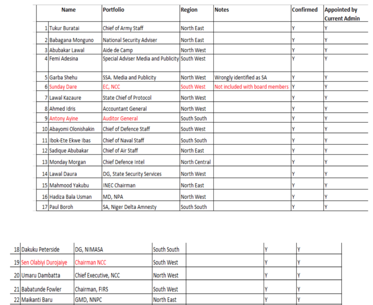 The figures and names were provided in response to allegations that President Buhari had favoured the Northern part of the country in the appointments announced so far.